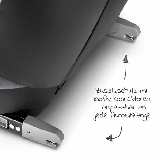 Den Kindersitz kannst Du auf zwei Arten in Deinem Auto befestigen: Entweder nur mit dem 3-Punkt Gurtsystem Deines Wagens oder zusΓ€tzlich mit dem Isofix-System. Die Konnektoren sind mehrfach verstellbar und passen sich so perfekt an die LΓ€nge des Fahrzeugsitzes an.