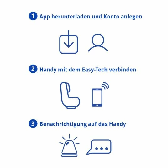 Mit dem Familienkonto in der App kannst Du gleichzeitig bis zu drei unterschiedliche Autokindersitze verbinden. Sollten einmal Opa, Oma oder der Babysitter mit Deinem kleinen Schatz im Auto unterwegs sein, ist das kein Problem. Mit Deinen festgelegten Anmeldedaten kann sich jeder im Familienkonto anmelden und sein Smartphone mit dem Kindersitz koppeln.