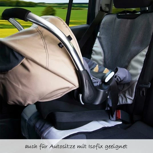 Zur Befestigung positionieren Sie die Schutzunterlage auf Ihrem Autositz, legen die Klettverschlรผsse um die Kopfstรผtze und verschlieรen diese. Die Unterlage ist kompatibel mit Babyschalen, Kindersitzen und Sitzerhรถhungen.