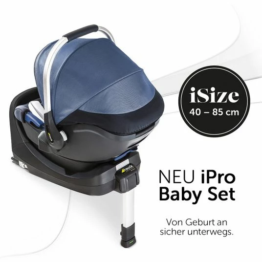 Schon ab der Geburt liegt Dein Baby bestens geschützt in der Babyschale iPro. Im 2-teiligen Neugeborenen-Einsatz ist es bequem eingebettet. Das modulare Seitenaufprallsystem aus verschiedenen, energieabsorbierenden Materialien sorgt für höchste Sicherheit und perfekten Schutz im Kopf- und Brustbereich. Für die ideale Passform lassen sich die Seitenpolster bewegen. Auch die Neugeborenen-Einlage wächst mit. Ist Dein Kind größer, nimmst Du das Sitzteil einfach raus und verwendest nur das Kopfkissen. Der weich gepolsterte 3-Punkt-Gurt hält Dein Kind sicher im Sitz. Er ist in der Höhe verstellbar und passt sich der Körpergröße an. Das große Verdeck schützt vor Sonne, Wind und Wetter. Mama und Papa profitieren vom leichten Grundgewicht der Babyschale und dem Alu-Tragebügel mit gepolstertem Griff. Die iPro Baby erfüllt die neuesten iSize-Sicherheitsstandards gemäß R129/02.