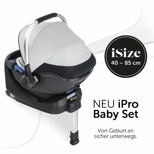 Schon ab der Geburt liegt Dein Baby bestens geschΓΌtzt in der Babyschale iPro. Im 2-teiligen Neugeborenen-Einsatz ist es bequem eingebettet. Das modulare Seitenaufprallsystem aus verschiedenen, energieabsorbierenden Materialien sorgt fΓΌr hΓΆchste Sicherheit und perfekten Schutz im Kopf- und Brustbereich. FΓΌr die ideale Passform lassen sich die Seitenpolster bewegen. Auch die Neugeborenen-Einlage wΓ€chst mit. Ist Dein Kind grΓΆΓer, nimmst Du das Sitzteil einfach raus und verwendest nur das Kopfkissen. Der weich gepolsterte 3-Punkt-Gurt hΓ€lt Dein Kind sicher im Sitz. Er ist in der HΓΆhe verstellbar und passt sich der KΓΆrpergrΓΆΓe an. Das groΓe Verdeck schΓΌtzt vor Sonne, Wind und Wetter. Mama und Papa profitieren vom leichten Grundgewicht der Babyschale und dem Alu-TragebΓΌgel mit gepolstertem Griff. Die iPro Baby erfΓΌllt die neuesten iSize-Sicherheitsstandards gemÀà R129/02.