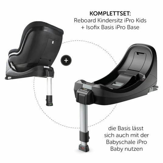 Mit der iPro Base bringst Du den Reboarder sicher in Deinem Auto an. Durch die verstellbaren Isofix-Konnektoren kannst Du ihn perfekt auf Deiner Rückbank positionieren. Dazu steckst Du die Konnektoren einfach in die Isofix-Vorrichtung des Autos. Für besonders festen Halt sorgt der höhenverstellbare Standfuß, der mit nur einer Hand entriegelt werden kann und automatisch einrastet. Farbindikatoren signalisieren Dir den richtigen Einbau von Basis, Sitz und Standfuß. Dank spezieller Führungsleisten gleitet der Kindersitz auf die richtige Position und rastet ein. Gelöst wird er mittels Knopfdruck.