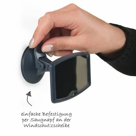 The high-quality suction cup with rubber component adheres safely and securely to any clean and grease-free glass surface. Thanks to the integrated ball joint, the mirror can always be precisely aligned to your child.