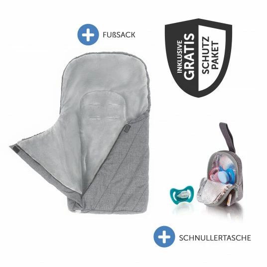 - gratis Zubehörpaket: mit Fußsack & Schnullertasche Deluxe
