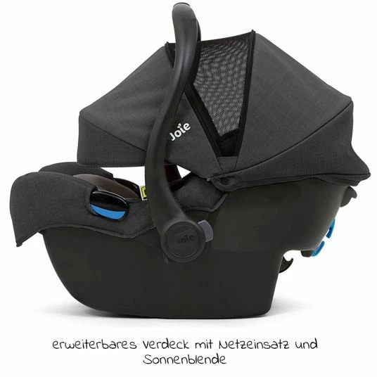 Am ergonomischen Tragebรผgel lรคsst sich die Babyschale anheben und einfach transportieren. Das abnehmbare Sonnenverdeck spendet Deinem Baby unterwegs angenehmen Schatten. Es ist besonders groร und mit einer extra Sonnenblende versehen, die Du bei Bedarf ausklappen kannst. Dank des praktischen Reiรverschlusses lรคsst sich das Verdeck auch erweitern.