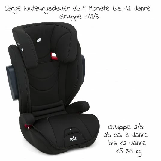 Der Kindersitz Traver Shield – Coal von Joie lässt sich optimal auf Dein Kind anpassen und ist dabei super bequem. Der weich gepolsterte Sitz kann mit Isofix-Konnektoren oder allein mit dem fahrzeugeigenen 3-Punkt-Gurt befestigt werden. Er hat einen abnehmbaren Seitenaufprallschutz für beide Seiten, eine mehrfach höhenverstellbare Kopfstütze, sowie tiefenverstellbare Sitzfläche und Sicherheitskissen. So kann Dein Kind sicher und bequem von etwa 9 Monaten bis 12 Jahren im Traver Shield mitfahren.