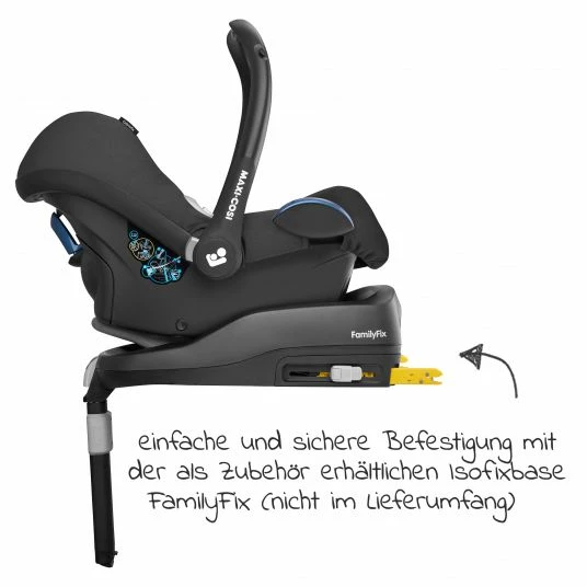 Die Babyschale CabrioFix kannst Du mit dem fahrzeugeigenen 3-Punkt-Gurt oder der separat erhΓ€ltlichen Isofix-Basis FamilyFix 052525000007 Β im Auto befestigen.