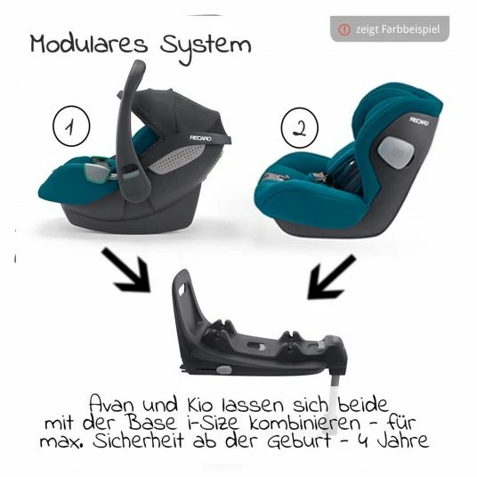 DieΒ Recaro Avan / Kio i-Size BaseΒ ist Bestandteil des modularen Systems von Recaro. Die i-Size Base kann ab der Geburt bis ca. 4 Jahren genutzt werden -zuerst mit der Babyschale Avan und anschlieΓendΒ mit dem Reboarder Kio. Die Isofix-Konnektoren und der ausklappbare StΓΌtzfuΓ sorgen fΓΌr eine sichere Befestigung der Base im Fahrzeug. Das Kontrollfenster zeigt dabei an, ob die Basis korrekt eingebaut wurde.